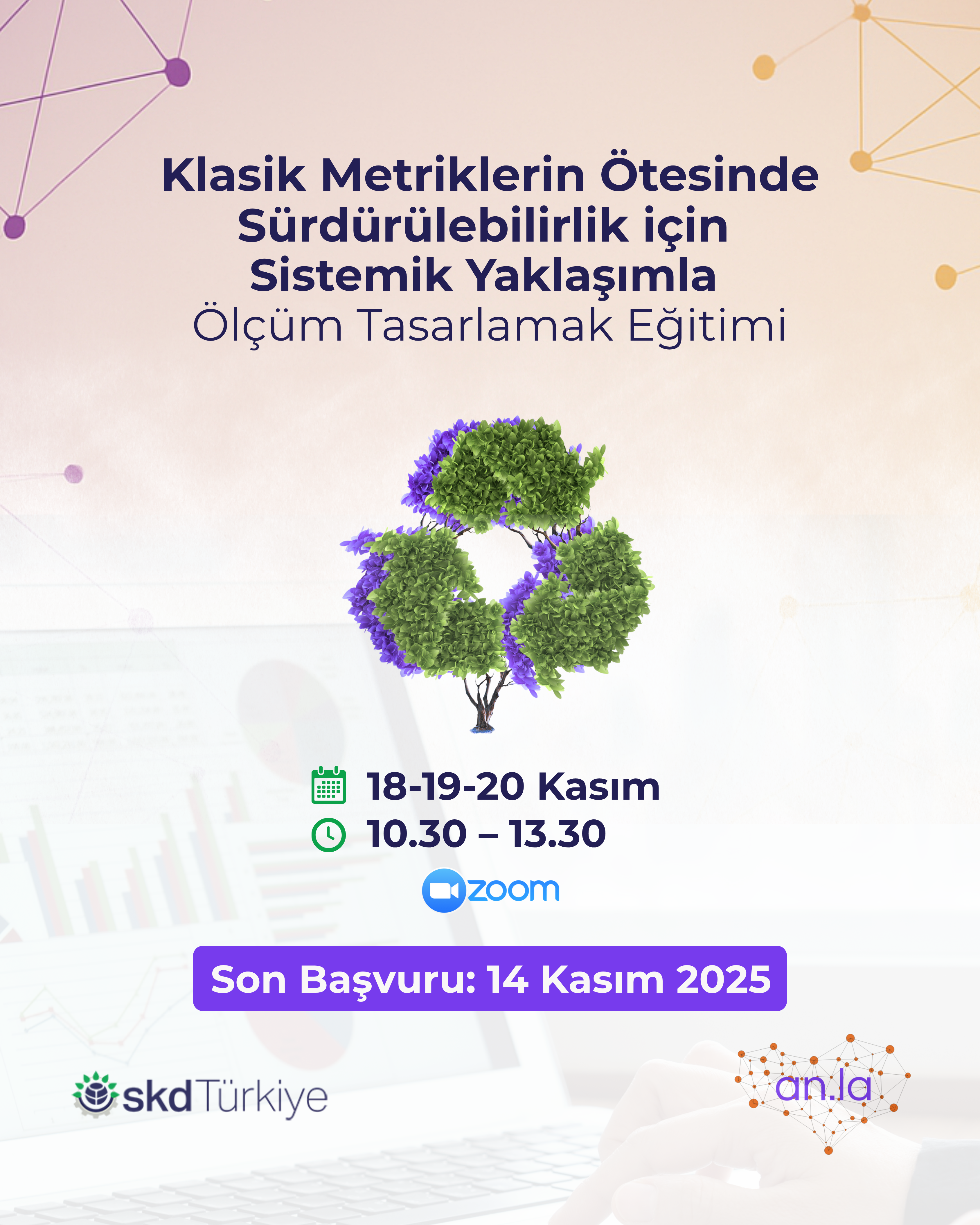 SKD Türkiye olarak, Fransa merkezli ANLA® Lab iş birliğinde 18-19-20 Kasım tarihlerinde düzenleyeceğimiz “Klasik Metriklerin Ötesinde: Sürdürülebilirlik için Sistemik Yaklaşımla Ölçüm Tasarlamak” eğitimi, sürdürülebilirlik raporlamasına yeni bir bakış açısı kazandırıyor. Bu eğitim, klasik metriklerin ötesine geçerek kurumların etkilerini karmaşık sistemler içinde yeniden tanımlamasına, raporlamada sistemik düşünceye dayalı ölçüm tasarımlarını geliştirmesine rehberlik ediyor.